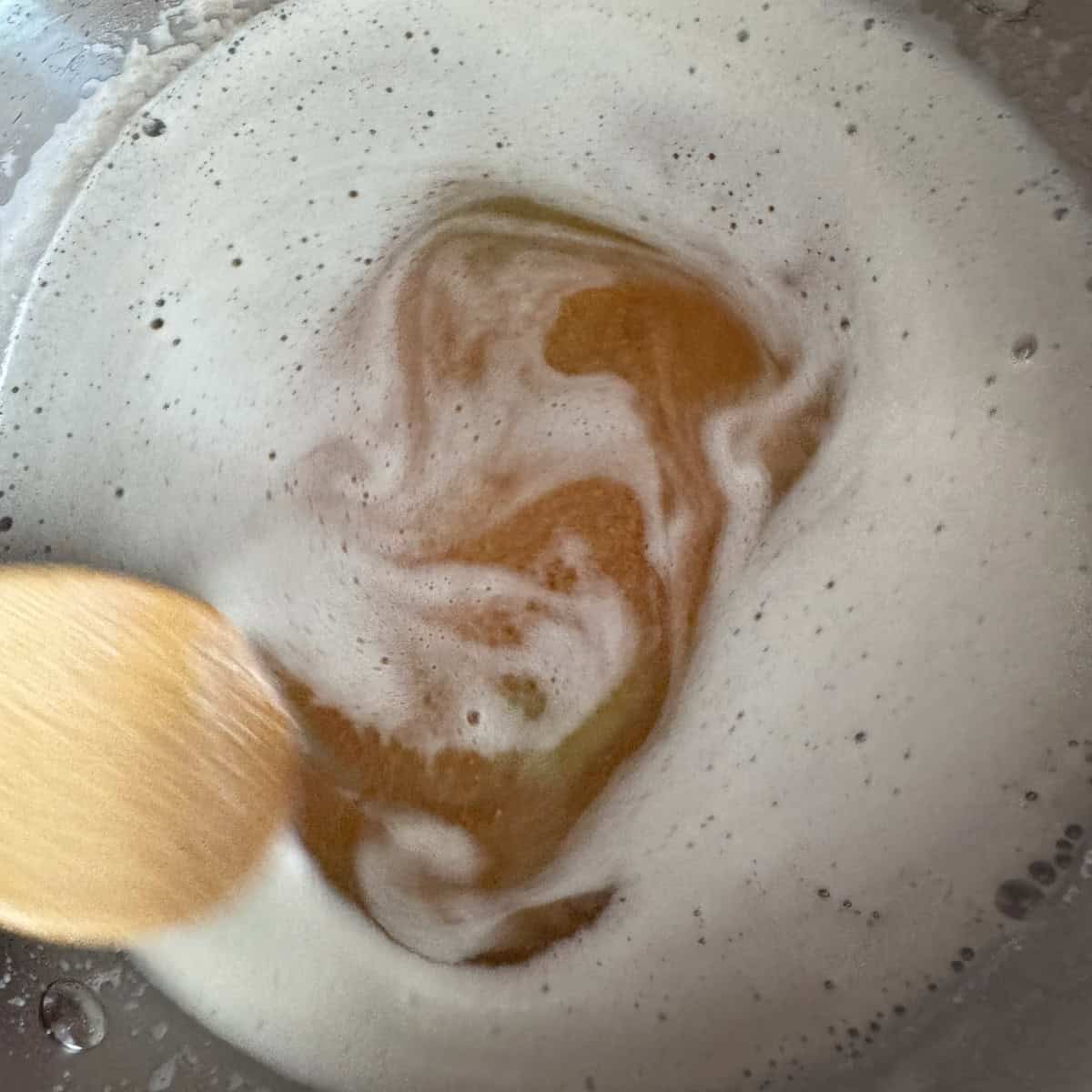 Step 2: Once melted, the butter will start to foam and the milk solids will separate and sink to the bottom. Stir more frequently once the butter starts to bubble and foam.